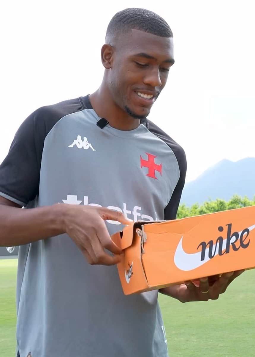 Rayan recebeu uma caixa da Nike durante o treinamento do Vasco; confira a imagem.