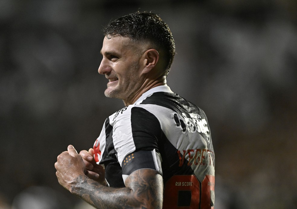 Vegetti comemora gol da vitória do Vasco sobre o Santos — Foto: André Durão / ge
