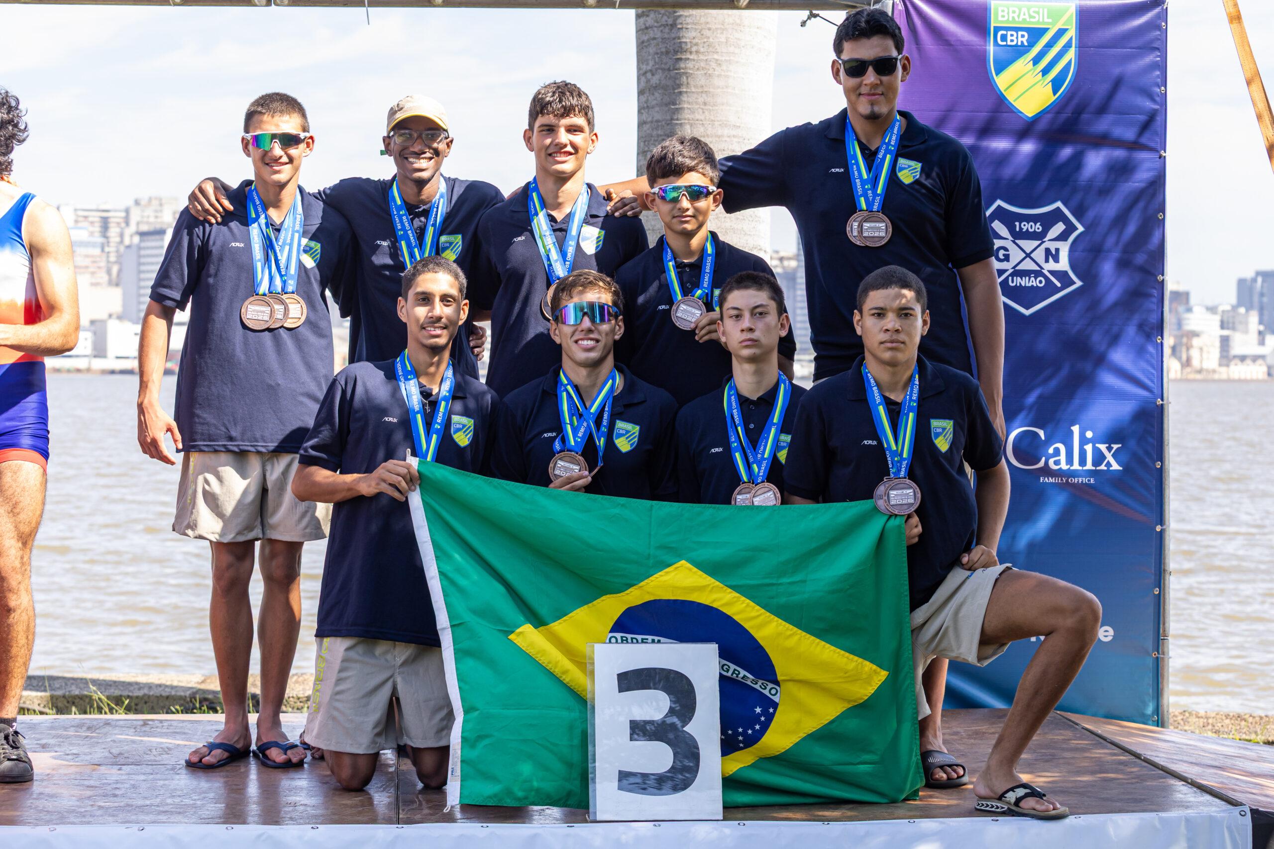 Lucas Neves Soares e João Vitor Dantas dos Reis também garantiram dois bronzes cada, subindo ao pódio no oito com (8+) júnior masculino e no quatro sem (4-) júnior masculino.