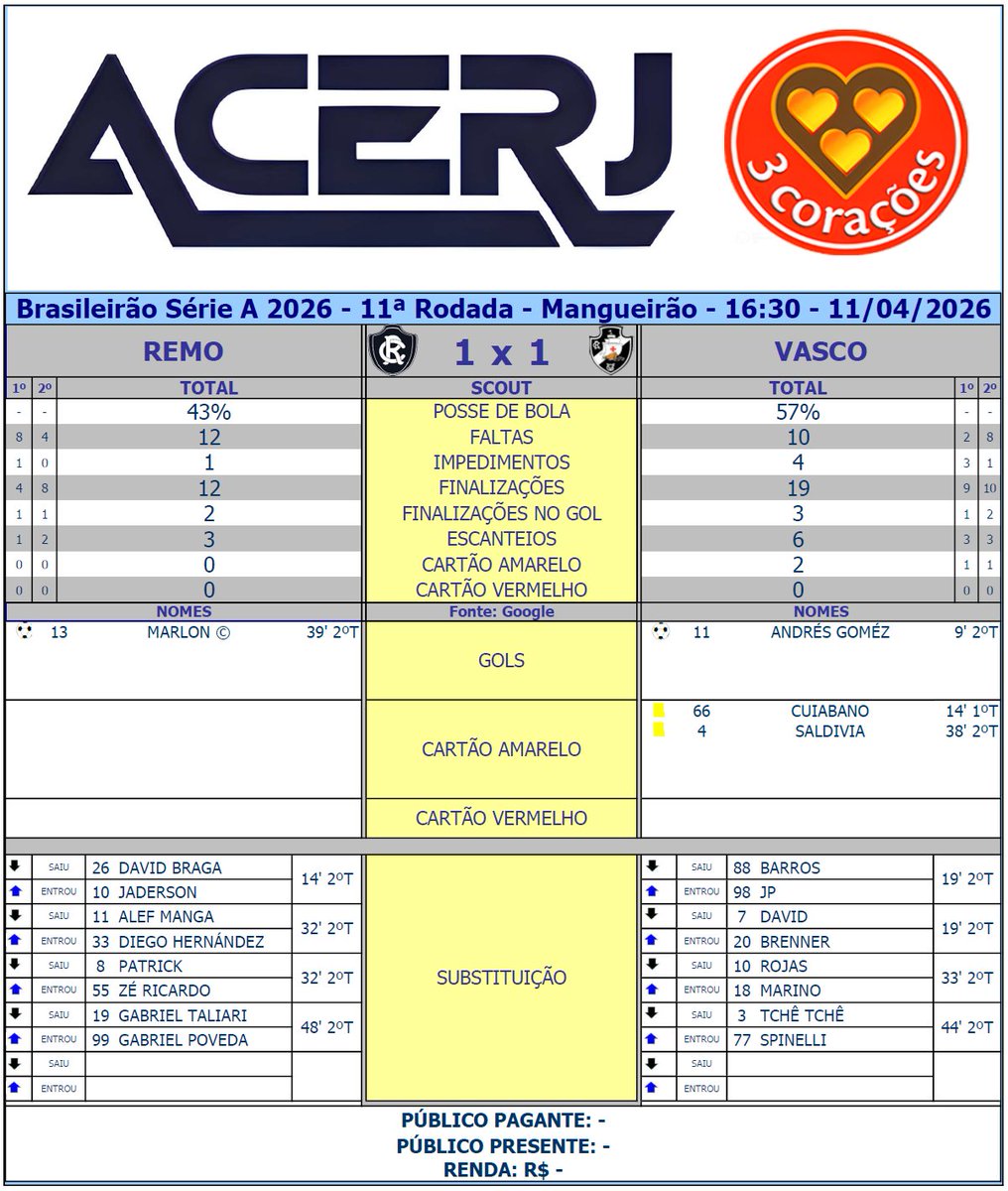 Remo e Vasco empatam: veja os números do confronto