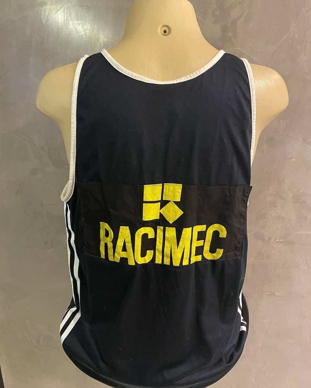 A imagem a seguir apresenta o modelo de uniforme utilizado pelos remadores durante a competição, patrocinado pela empresa de informática Racimec, que era destacada na cor amarela.