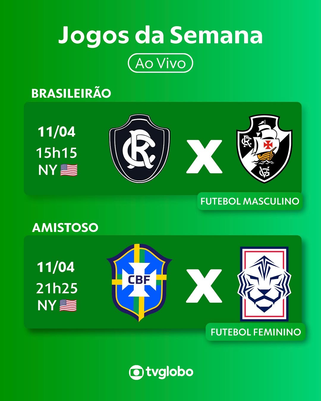 A TV Globo transmitirá internacionalmente o jogo entre Remo e Vasco.