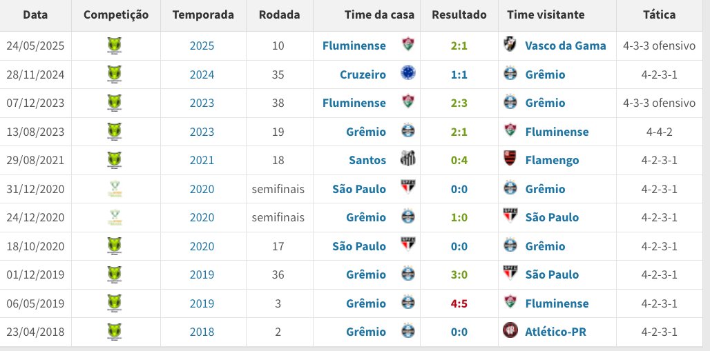 Renato Gaúcho e Fernando Diniz se enfrentaram 11 vezes, com 6 vitórias para o técnico do Vasco e apenas 1 para Diniz.