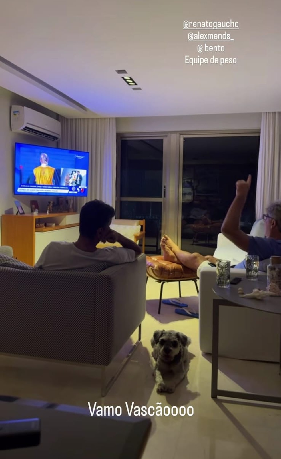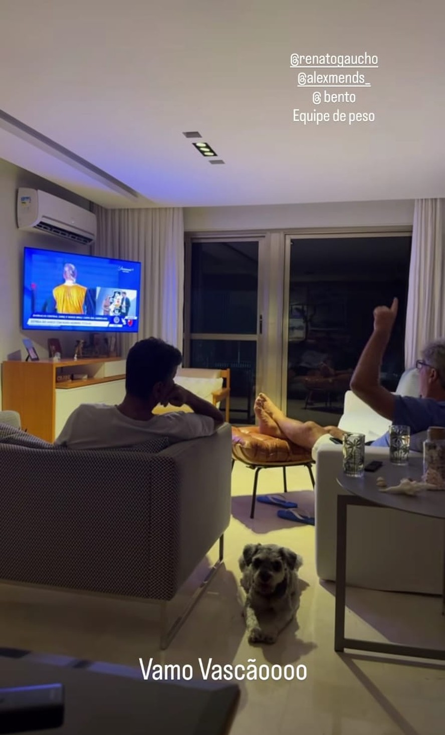 O técnico Renato Gaúcho, que não esteve presente na Argentina para dirigir o Vasco em sua estreia na Copa Sul-Americana, acompanha a partida pela televisão. Em uma imagem, sua filha, Carol Portaluppi, registrou o treinador assistindo ao confronto entre o Vasco e o Barracas Central.