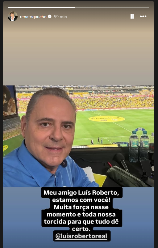Renato Gaúcho expressa solidariedade a Luís Roberto, que está afastado das transmissões devido a problemas de saúde.