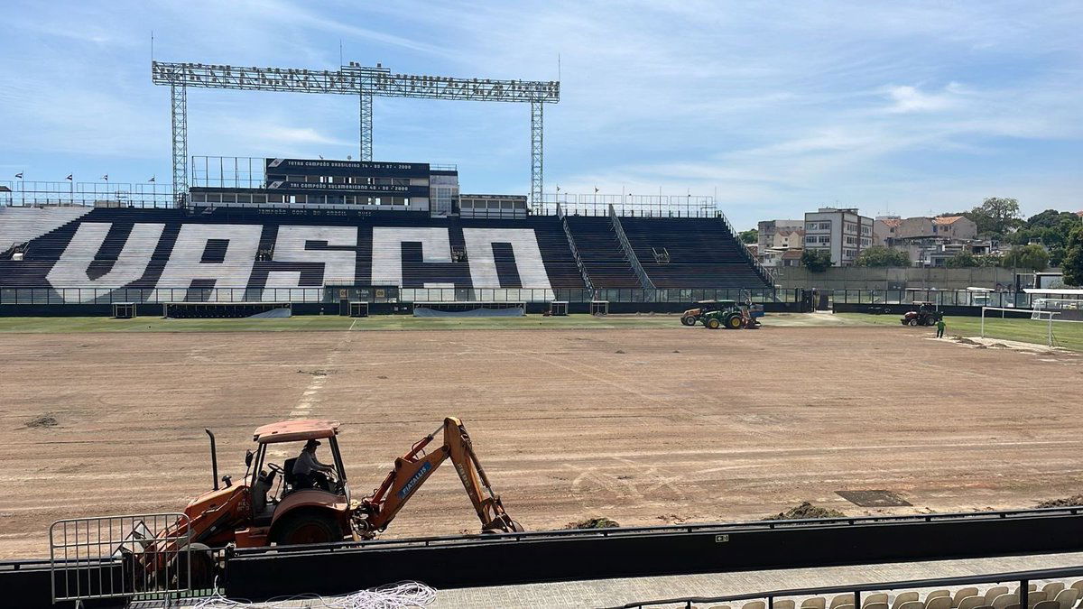 Estamos nos momentos finais da remoção do antigo gramado do Estádio de São Januário. Esta foto foi tirada na manhã de hoje. De acordo com a @greenleafgramados, até esta sexta-feira, começará a instalação do novo gramado. Cerca de 10 mil metros quadrados de grama Bermuda, procedente de uma fazenda em Saquarema, serão entregues em rolos para a colocação. Até domingo, a empresa planeja finalizar o trabalho no campo para que ele esteja pronto para os ajustes finais antes do jogo contra o Internacional, marcado para 28/11.