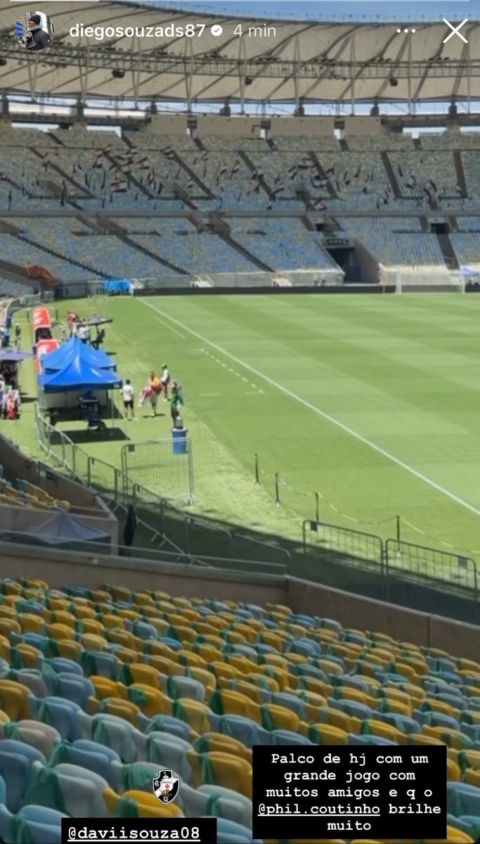💢👂 Diego Souza, revelado pelo Fluminense e campeão da Copa do Brasil vestindo a camisa 10 do Vasco, está presente no Maracanã e compartilhou em seus stories: