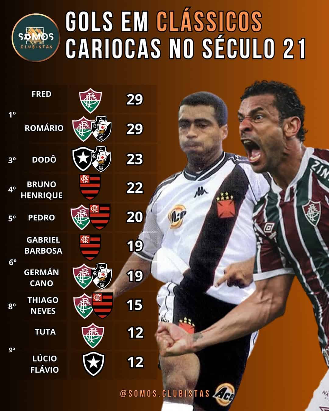 O Botafogo, em particular, é a equipe que mais sofreu gols de Fred, contabilizando 14 das suas 29 ocorrências. O Vasco foi vazado 8 vezes por ele, enquanto o Fluminense e o Flamengo levaram 7 e 8 gols, respectivamente. Romário, por sua vez, também deixou sua marca em todos os grandes clubes do estado, com o Botafogo novamente figurando entre os mais afetados, ao lado do Flamengo e do Fluminense. O Vasco, no entanto, teve apenas 1 gol sofrido do Baixinho.