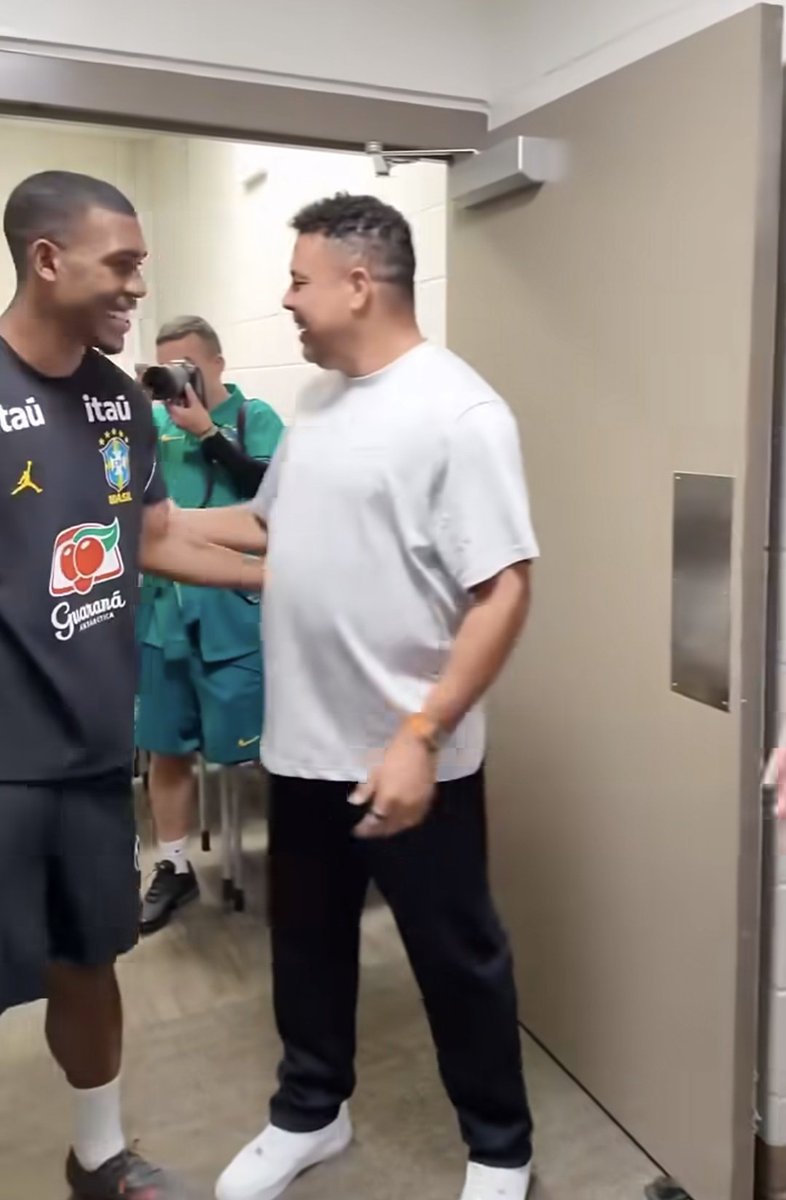 Ronaldo Fenômeno visita a Seleção e encontra Rayan, registrando o momento em imagem.
