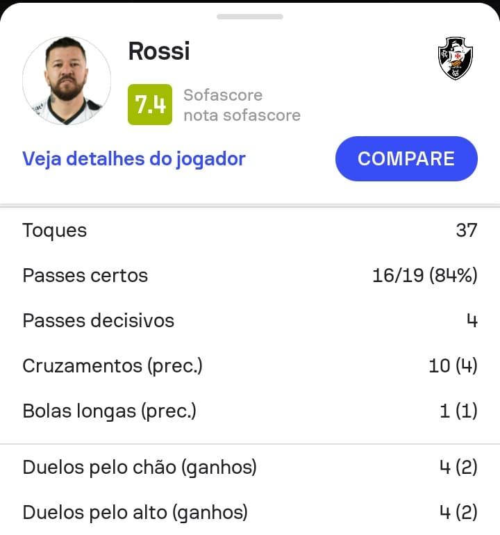 reprodução/sofascore Informações fornecidas por: Sofascore