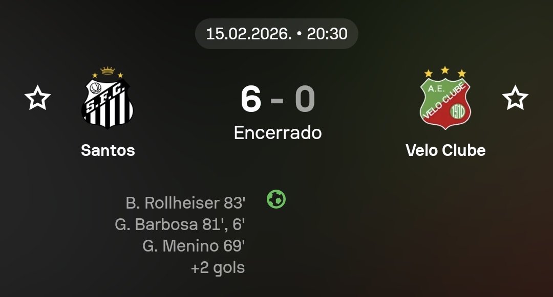 Santos vence Velo Clube por 6 a 0 no Campeonato Paulista.