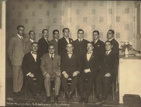Diretoria do Vasco no ano de 1927. Sentado, no centro, está o presidente Raul da Silva Campos, ladeado pelos vice-presidentes Antônio de Almeida Pinho (à esquerda) e Manoel Joaquim Pereira Ramos (à direita).
