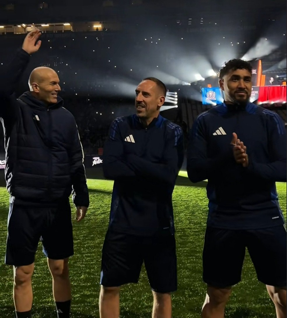 Payet, Zidane e Ribéry em evento da Kings League — Foto: Reprodução