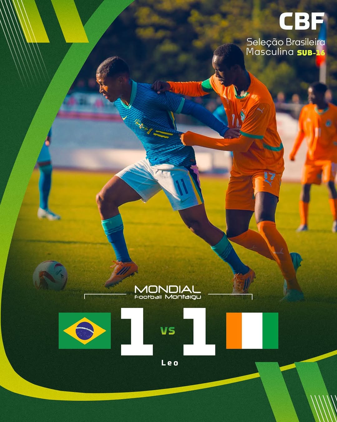 Seleção Sub-16 fica no empate com a Costa do Marfim na estreia do Torneio de Montaigu; Allan e Rodrigo Jr. são titulares