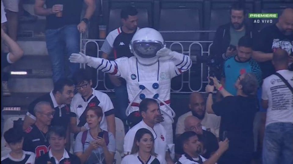 Público presente foi surpreendido com a presença de um COSMONAUTA em São Januário. Presença inesperada no estádio. reprodução/premiere