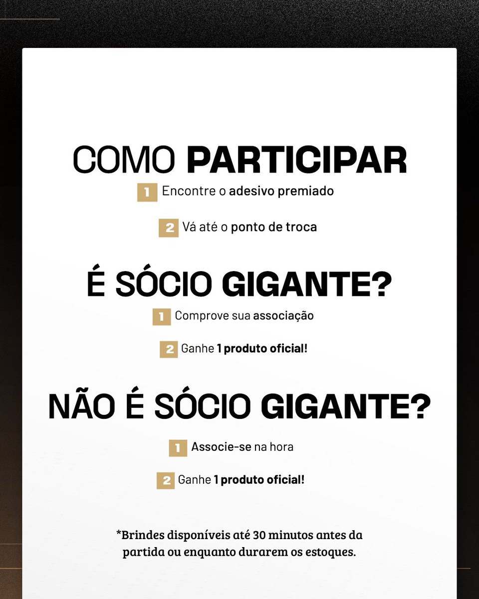 Os sócios poderão encontrar adesivos premiados no setor Leste e participar do pré-jogo no domingo, onde terão a oportunidade de ganhar brindes exclusivos.
