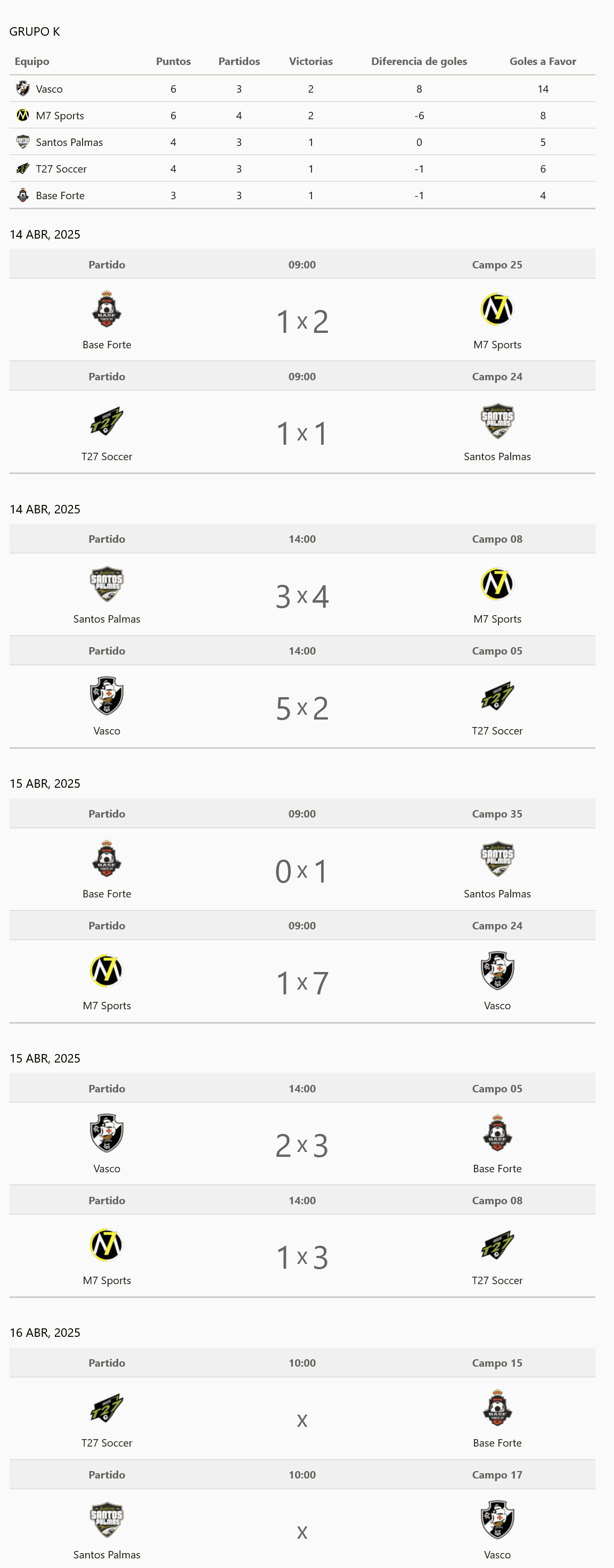 Sub-10: Vasco vence o M7 Sports por goleada, é derrotado pelo Base Forte, mas se mantém na liderança do grupo na Go Cup