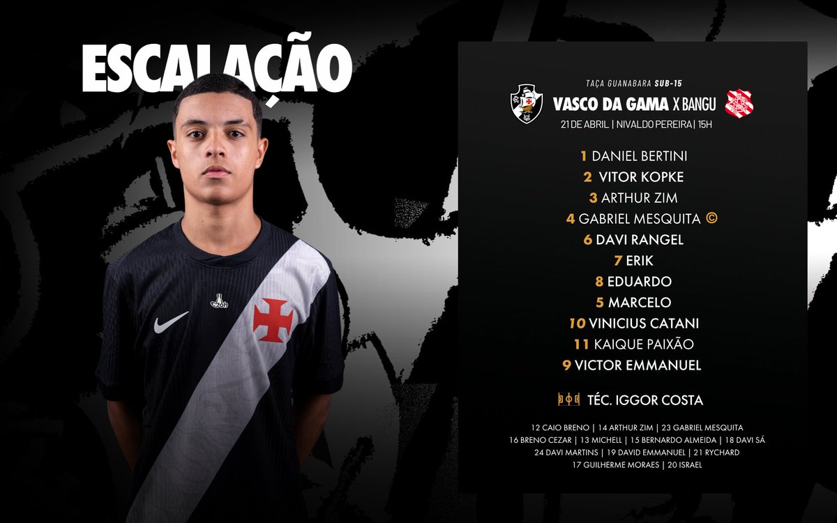 Sub-15: Vasco divulga escalação para duelo contra o Bangu