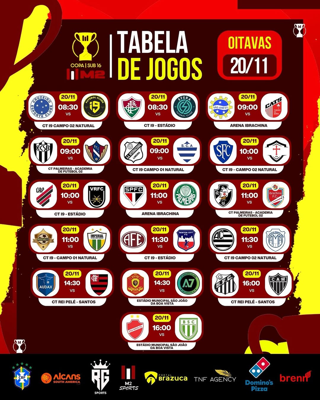 A bola vai rolar! ⚽🔥 A segunda fase da Copa M2 Sub-16 está definida e promete grandes duelos.