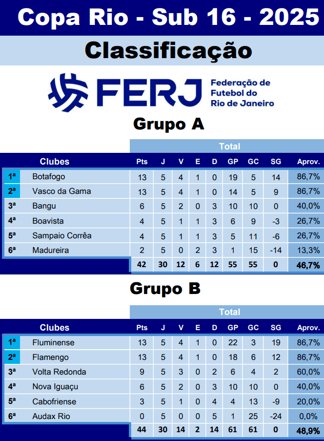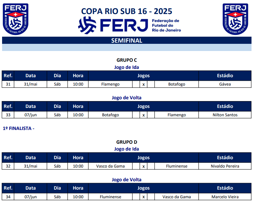 Sub-16: Vasco disputará semifinais da Copa Rio contra o Fluminense nos dias 31/05 e 07/06