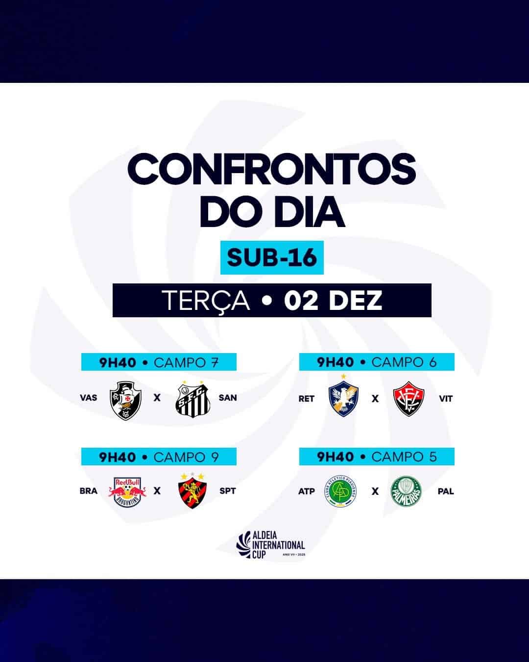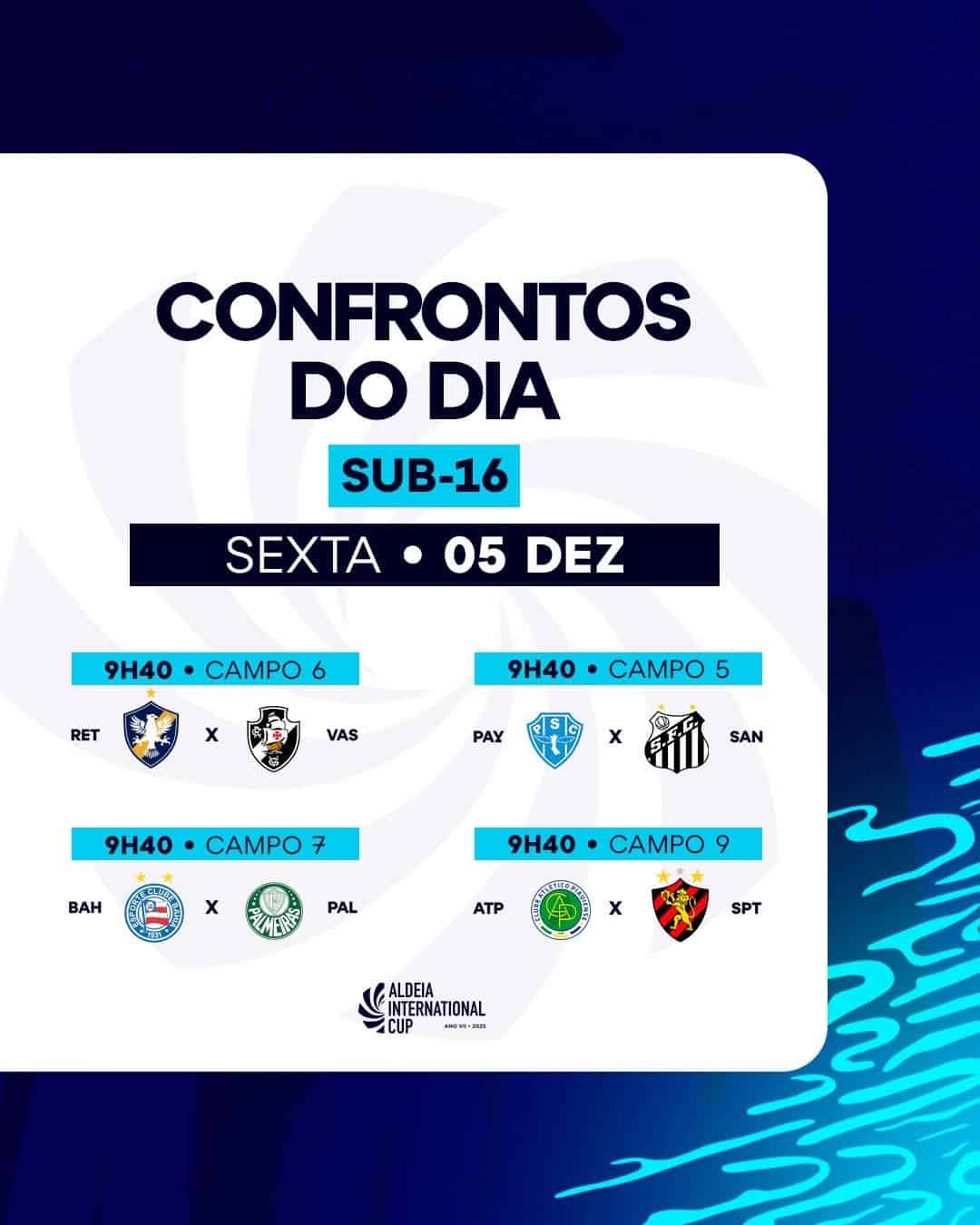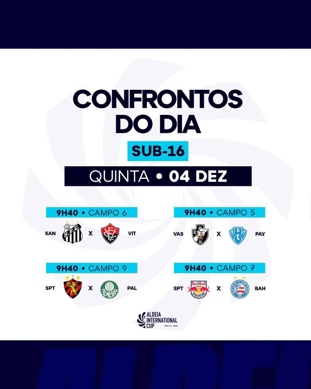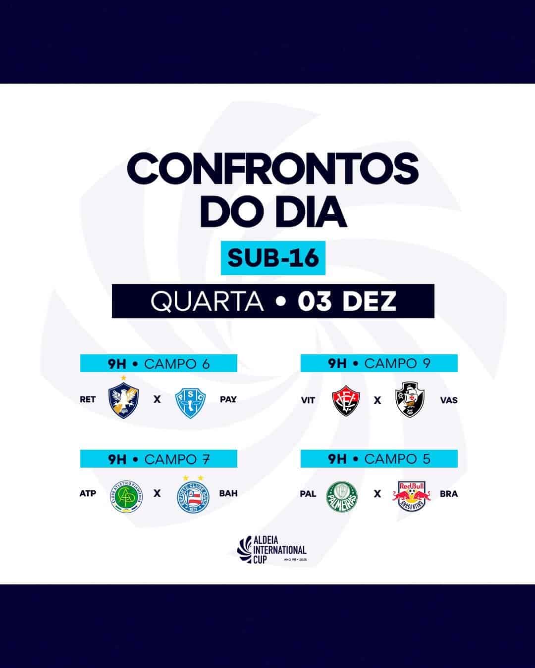 Os grupos e partidas estão oficialmente estabelecidos para o Sub-16 na sétima edição da #AldeiaCup. ⚽️