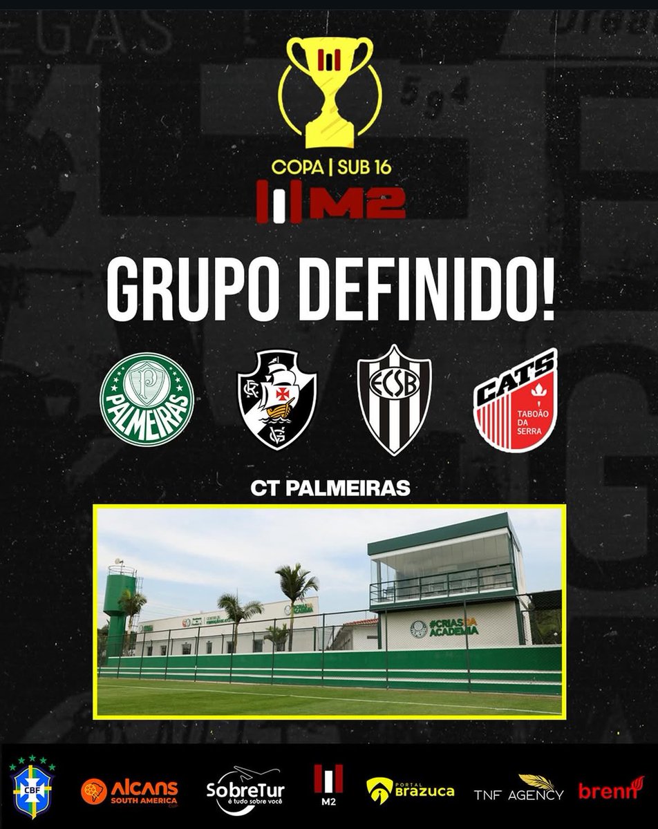 A primeira rodada da Copa M2 Sub-16 está definida, com grandes confrontos programados.