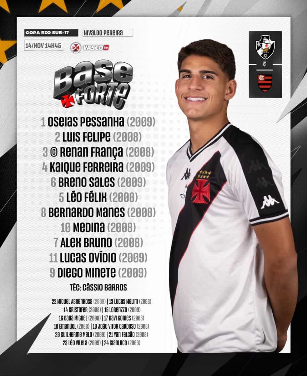 O time Sub-17 está confirmado para o confronto contra o Flamengo, que acontecerá às 14h45 na segunda partida da final da Copa Rio! 💢
