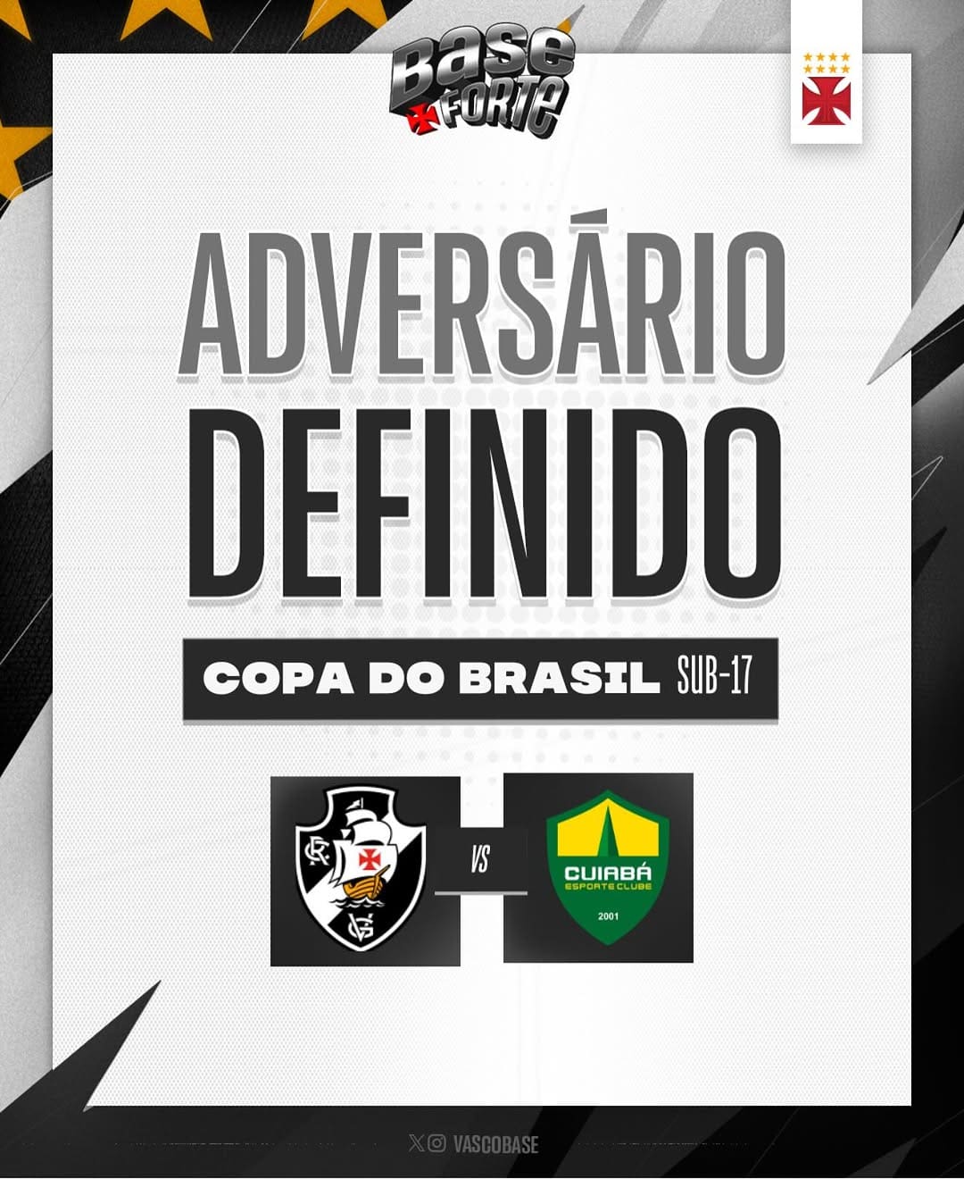 O Vasco irá duelar contra o Cuiabá nas oitavas de final da Copa do Brasil Sub-17. Vamos com tudo! 💢