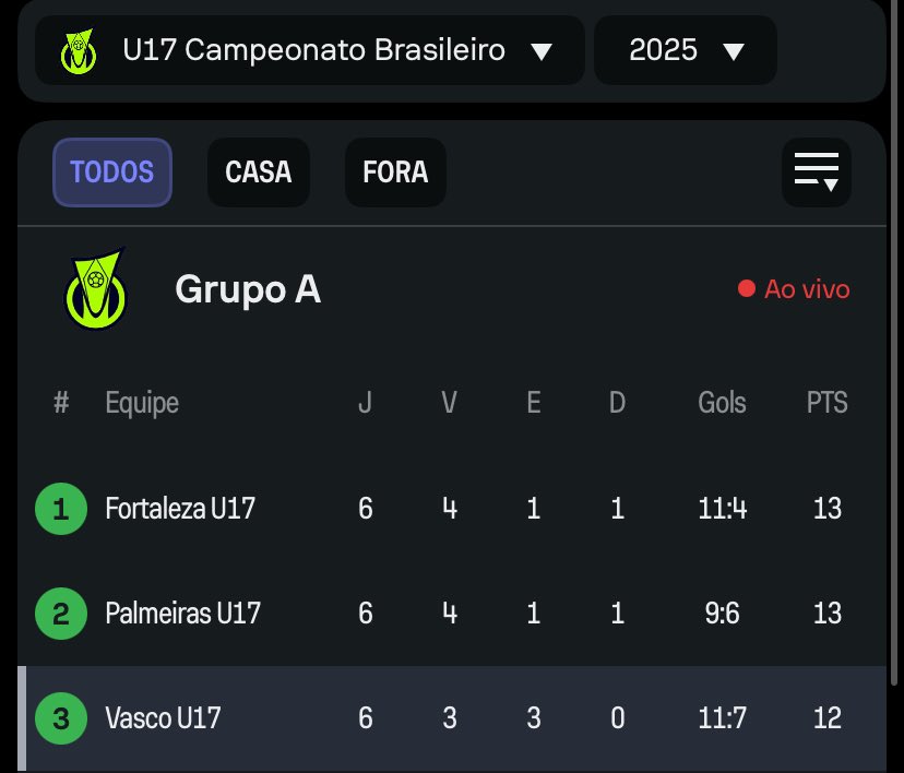 O Vasco Sub-17 acaba de conquistar uma vitória de 1 a 0 sobre o Fortaleza no Campeonato Brasileiro da categoria. O volante Luiz Felipe foi o autor do gol. Com essa vitória, a equipe do técnico Cássio Barros alcançou a 3ª posição, somando 12 pontos, e permanece sendo o único time invicto na competição.