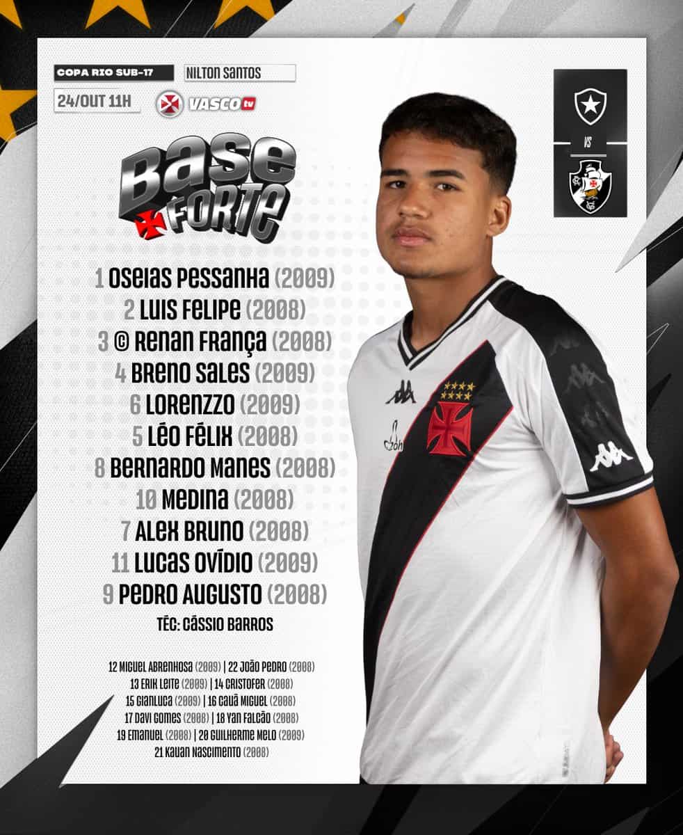 O time Sub-17 está preparado para enfrentar o Botafogo, com início às 11h! 💢