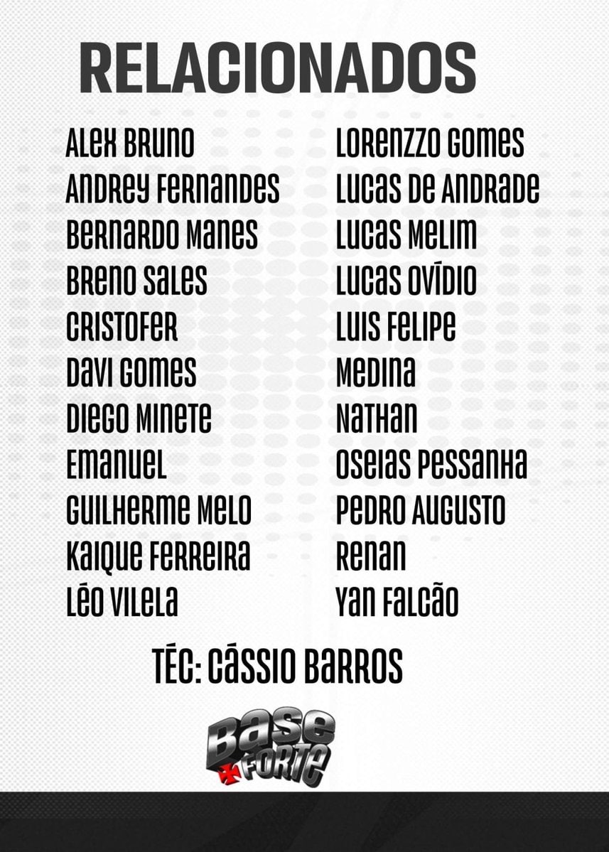 O Vasco anunciou a lista de jogadores convocados para o confronto decisivo contra o Palmeiras, válido pelas quartas de final do Campeonato Brasileiro Sub-17. O treinador Cássio Barros contará com os reforços de Andrey Fernandes e Diego Minete para esta partida, que terá início às 15h, na Arena Barueri. A partida será transmitida pelo SporTV.