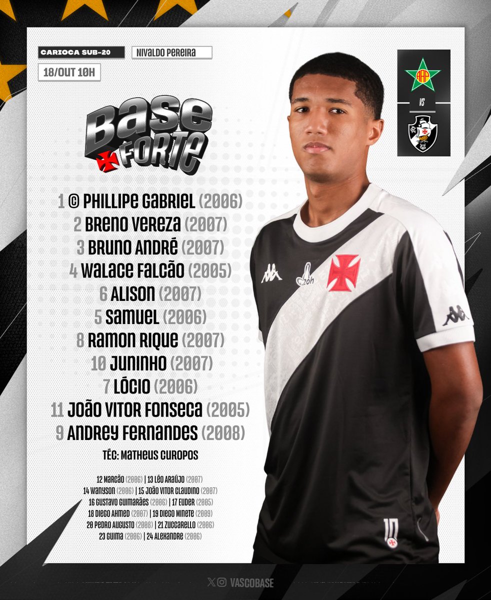 Vasco revela novidades empolgantes para o duelo decisivo contra o Resende na categoria Sub-15.