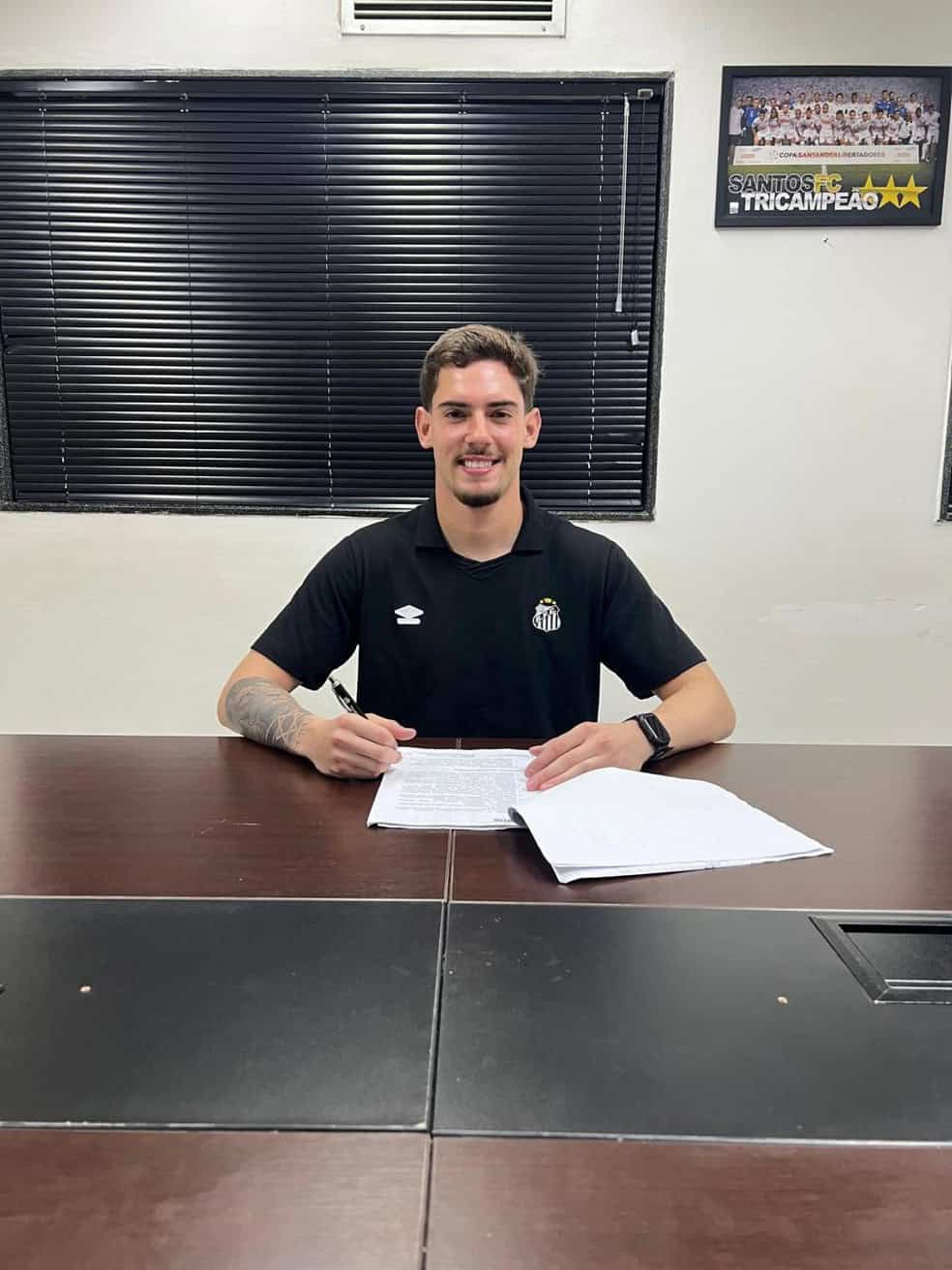 Thiago Parente no dia da assinatura com o Santos, em foto anexada ao processo — Foto: Arquivo Pessoal