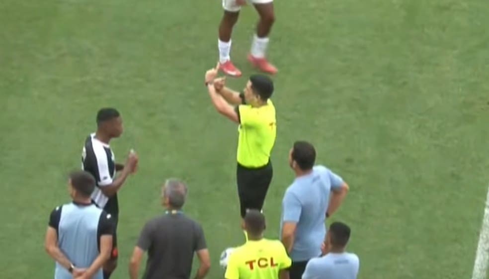 Árbitro cruza os braços e dá início ao protocolo antirracista — Foto: Reprodução/Santos TV