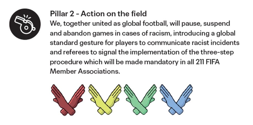 Procedimento de gestos da arbitragem criado pela Fifa para casos de racismo no futebol — Foto: Reprodução