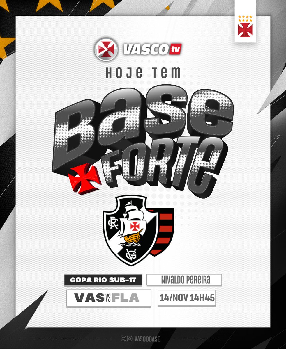 Vasco enfrenta o Flamengo nesta 6ª-feira pela Copa Rio Sub-17 e, no sábado, enfrenta Botafogo e Fluminense nas categorias Sub-20 e Sub-15.