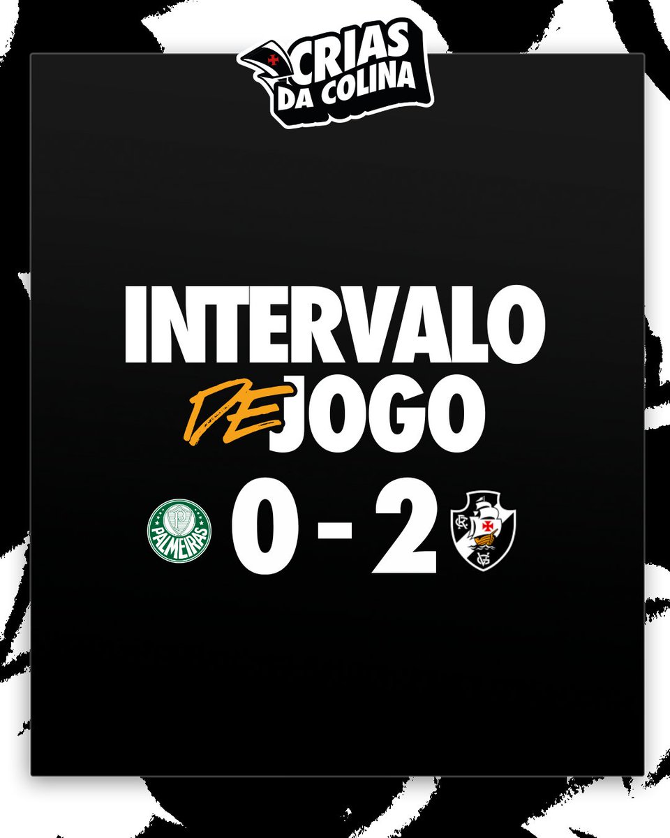 No intervalo da partida em Barueri, o Vasco está à frente do Palmeiras com um placar de 2 a 0 na categoria Sub-20
