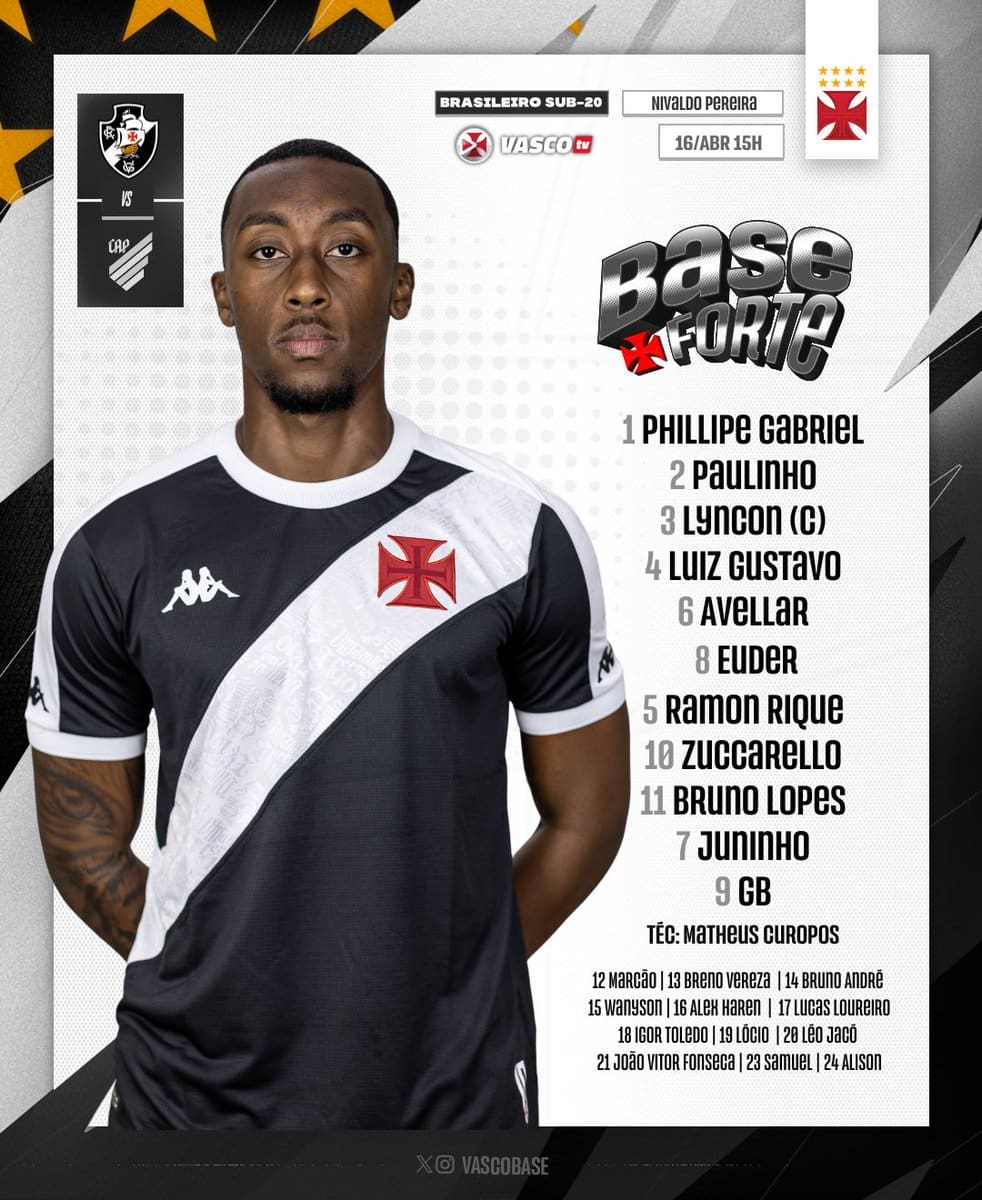 Sub-20: Veja a formação do Vasco para a partida contra o Athletico-PR