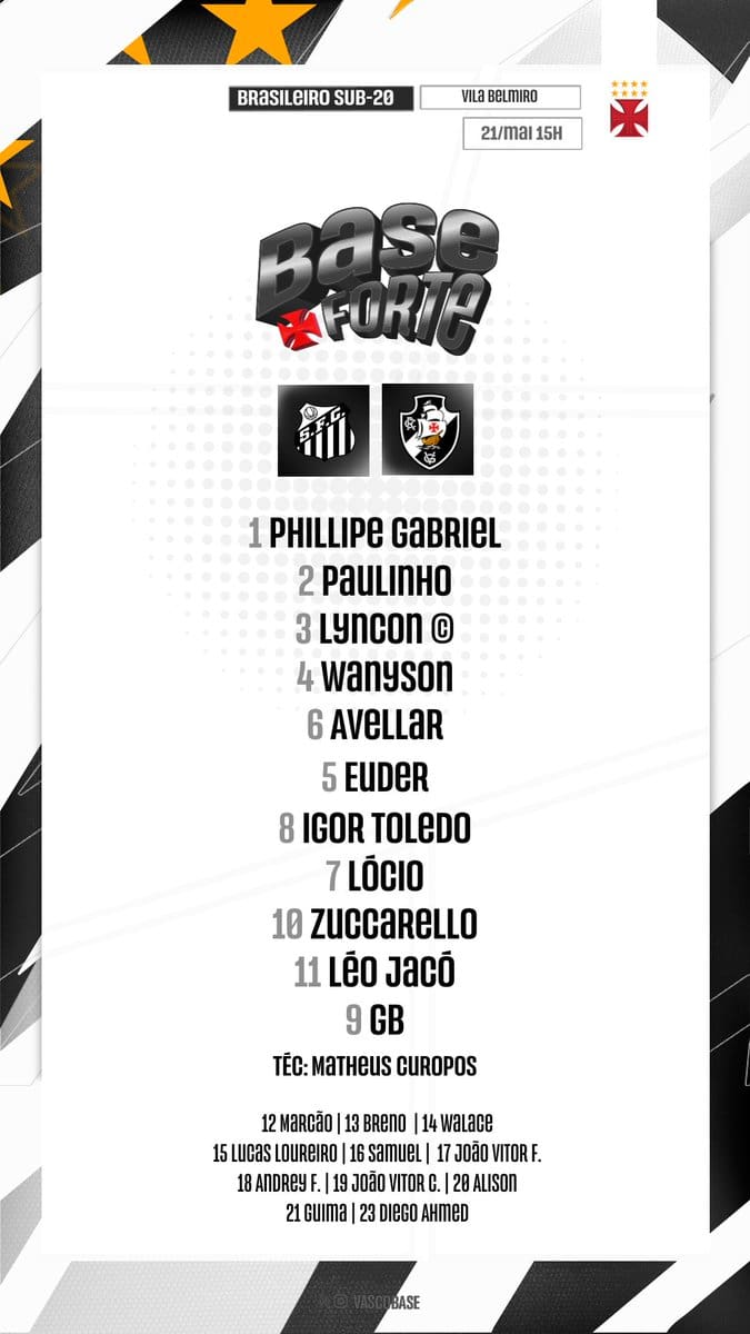 Vasco Sub-20 preparado! Confira a escalação para o duelo contra o Santos e torça pela nossa garotada! ️