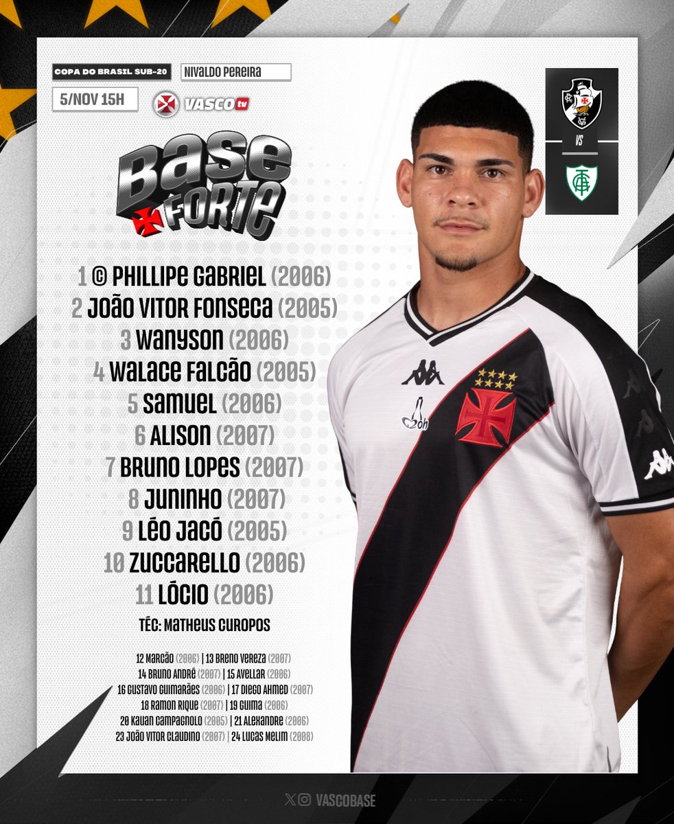 Sub-20: Vasco derrota o América-MG por 3 a 1 no Nivaldo Pereira, mas é eliminado nos pênaltis e sai da Copa do Brasil.