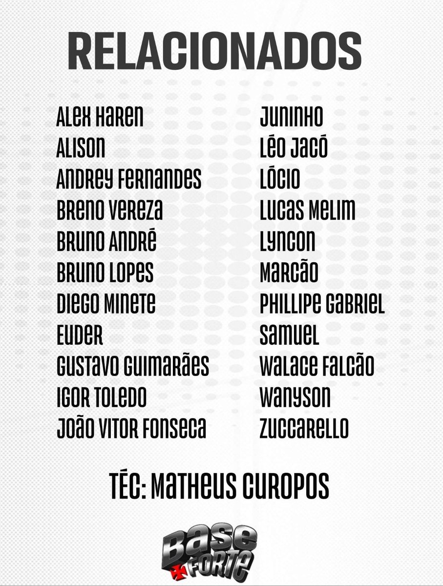O treinador Matheus Curopos divulgou a lista de jogadores convocados para o confronto contra o Cuiabá, que ocorrerá fora de casa às 16h, pelo Campeonato Brasileiro Sub-20. Um dos principais desfalques é o volante Ramon Rique, que está fora devido a uma pubalgia. A partida será transmitida pela Cuiabá TV. Confira a lista: