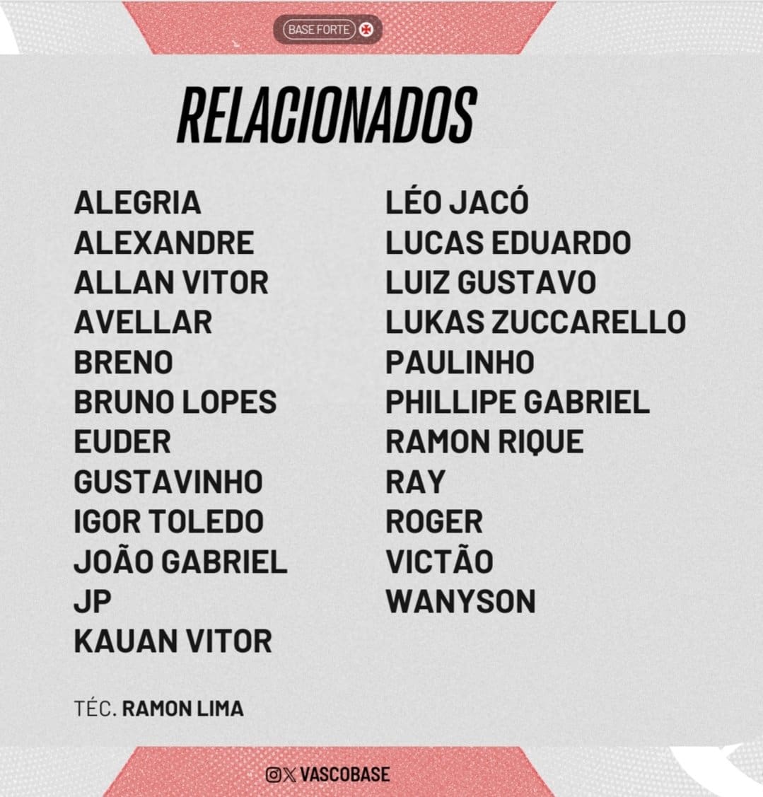 O Vasco acabou de anunciar os jogadores convocados para a grande final do Carioca Sub-20, que acontece às 10h, contra o Flamengo, em São Januário. A grande novidade é o retorno do lateral-direito Paulinho. Entretanto, o time vai sentir a falta de quatro jogadores importantes: GB e Lyncon, que estão com a Seleção, além de Matheus Ferreira e João Vitor, que estão suspensos.(+)