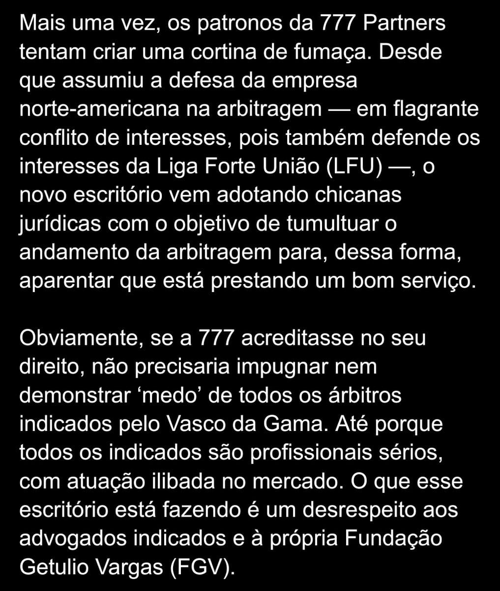 Vasco Rebate Pedido da 777 para Impugnar Indicado na Arbitragem: “É Uma Nova Cortina de Fumaça” sexta-feira, 11/04/2025 às 17:08 — Em Últimas notícias
