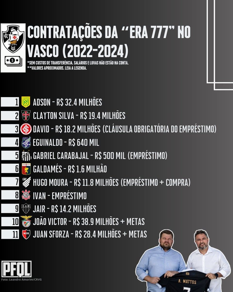 Reviva todas as aquisições da administração 777 no Vasco domingo, 27/04/2025 às 06:34 — Em Últimas notícias