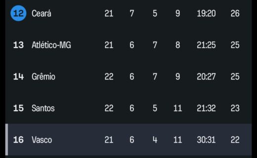 Vasco e Ceará: apenas quatro pontos os separam na tabela do Campeonato Brasileiro domingo, 14/09/2025 às 20:07 — Em Últimas notícias