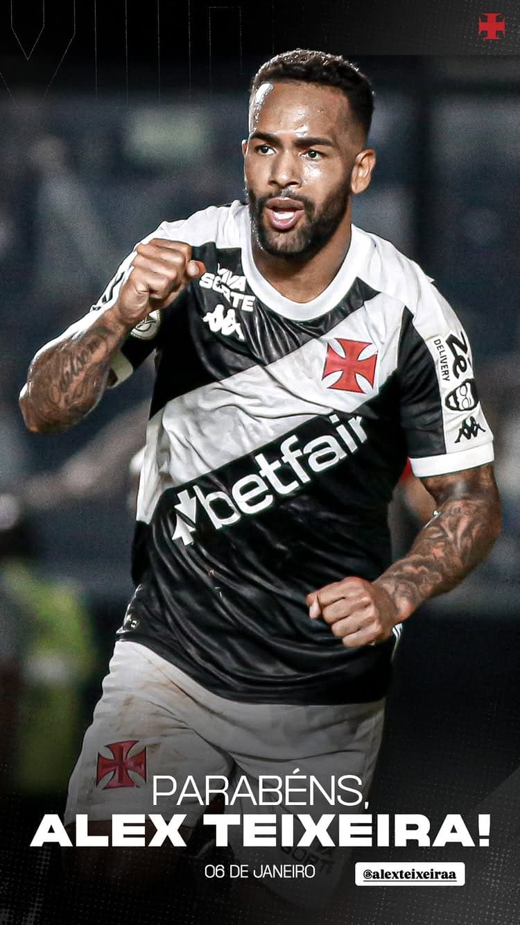 Vasco celebra o aniversário de Alex Teixeira, que hoje é o aniversariante. segunda-feira, 06/01/2025 às 13:33 — Em Últimas notícias