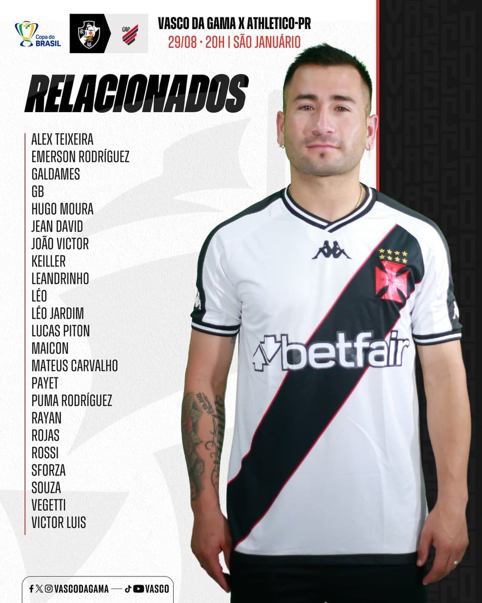 Vasco convoca reforços para duelo contra o Athletico-PR: Alex Teixeira e Jean David na lista quinta-feira, 29/08/2024 às 17:09 — Em Últimas notícias