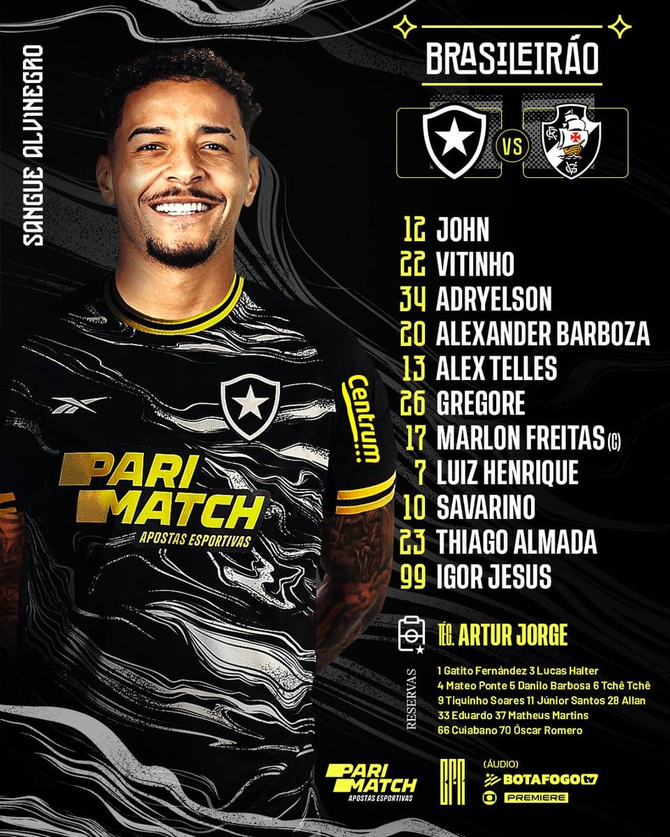 Veja a formação do Botafogo para o confronto contra o Vasco; os ex-jogadores do Vasco, Allan e Danilo Barbosa, começam na reserva. terça-feira, 05/11/2024 às 20:35 — Em Últimas notícias