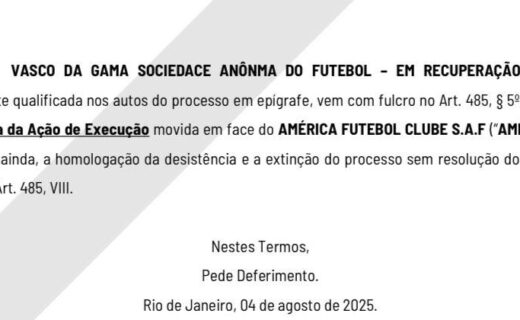 Vasco desiste de cobrar R$ 1,3 milhão do América-MG por Matheus Henrique sexta-feira, 29/08/2025 às 07:26 — Em Últimas notícias