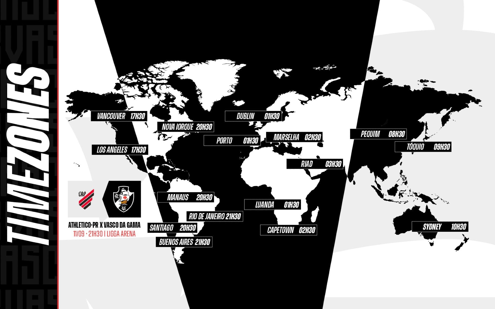 Vasco divulga o horário da partida contra o Athletico-PR em diferentes regiões do mundo. quarta-feira, 11/09/2024 às 17:51 — Em Últimas notícias